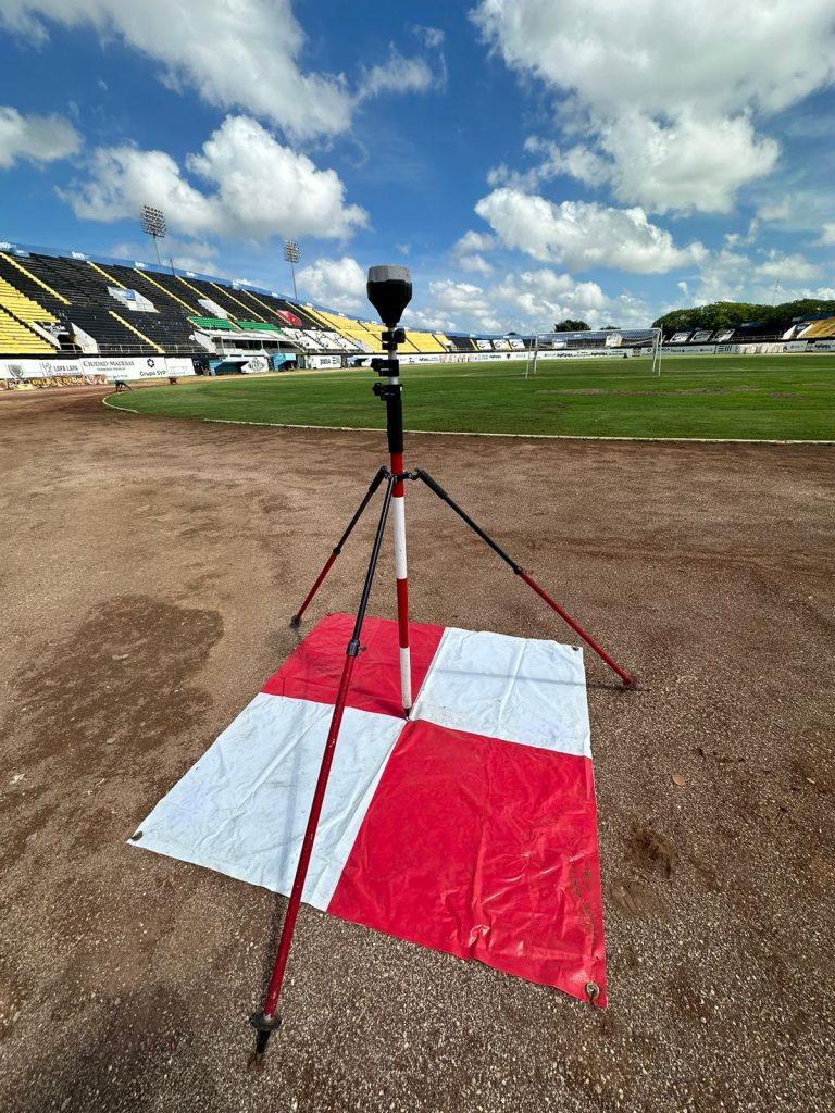 Brigada topográfica de Geoland trabajando en la medición precisa para proyectos de ingeniería.